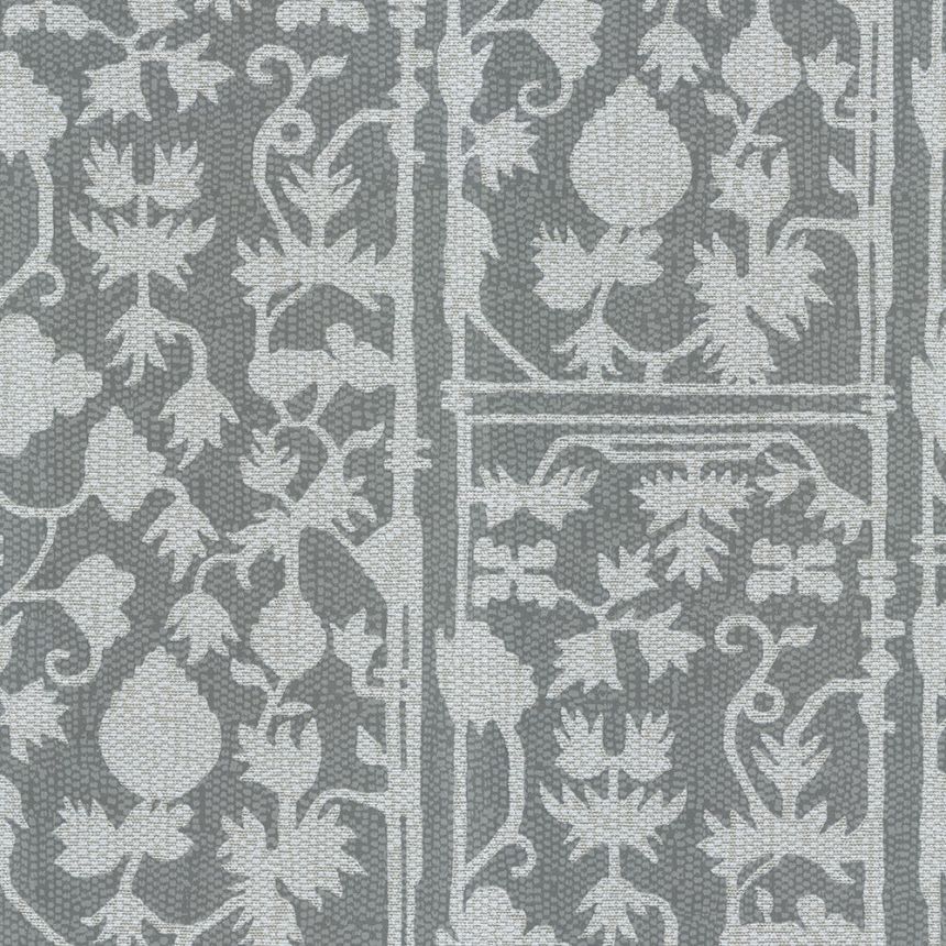 Šedo-černá vliesová tapeta na zeď, jemně plastická textilní struktura.