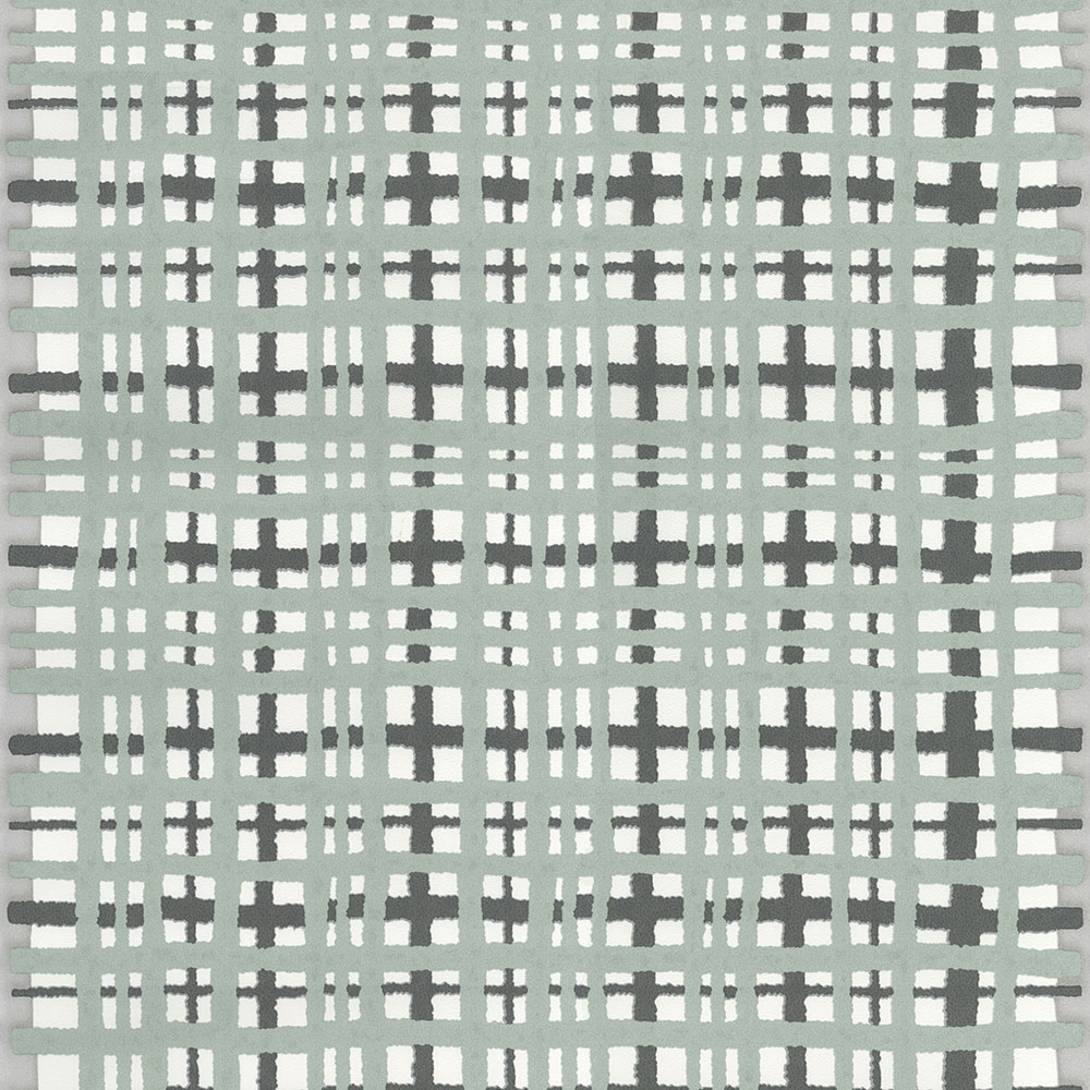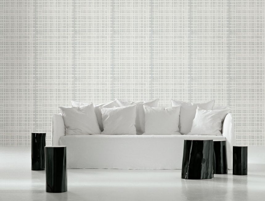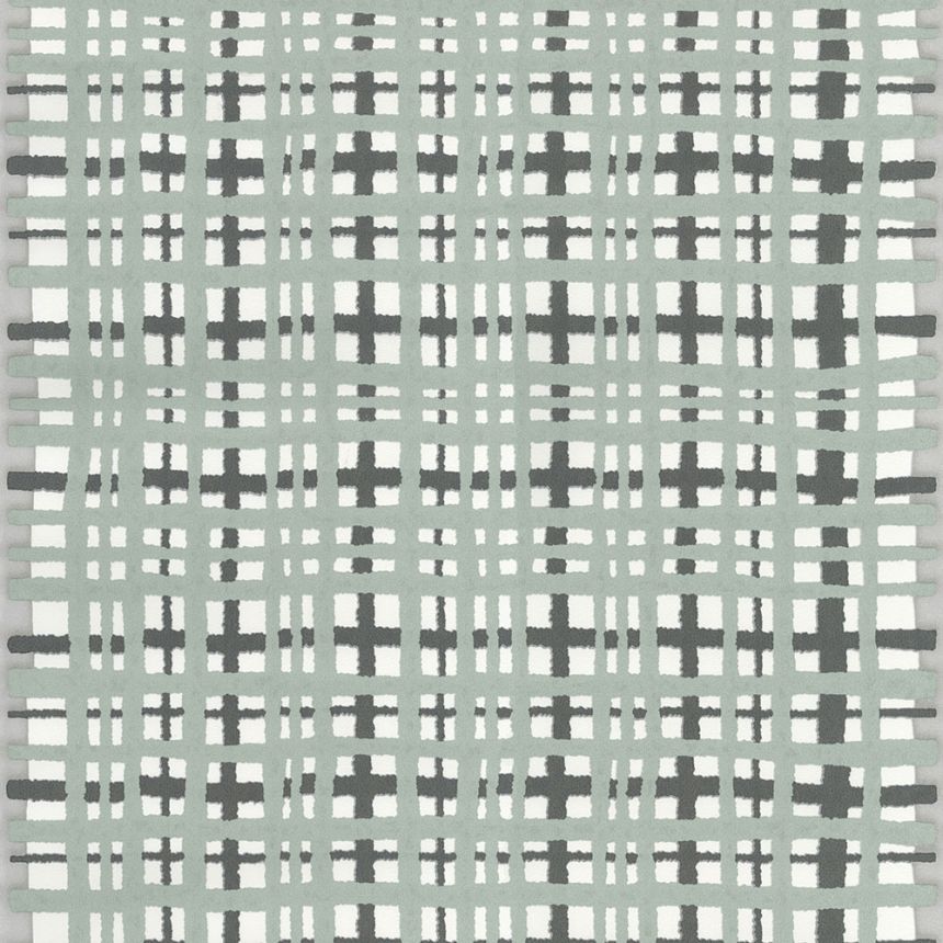 Jemně plastická károvaná vliesová tapeta na zeď, odstíny šedé a šedo-zelené.