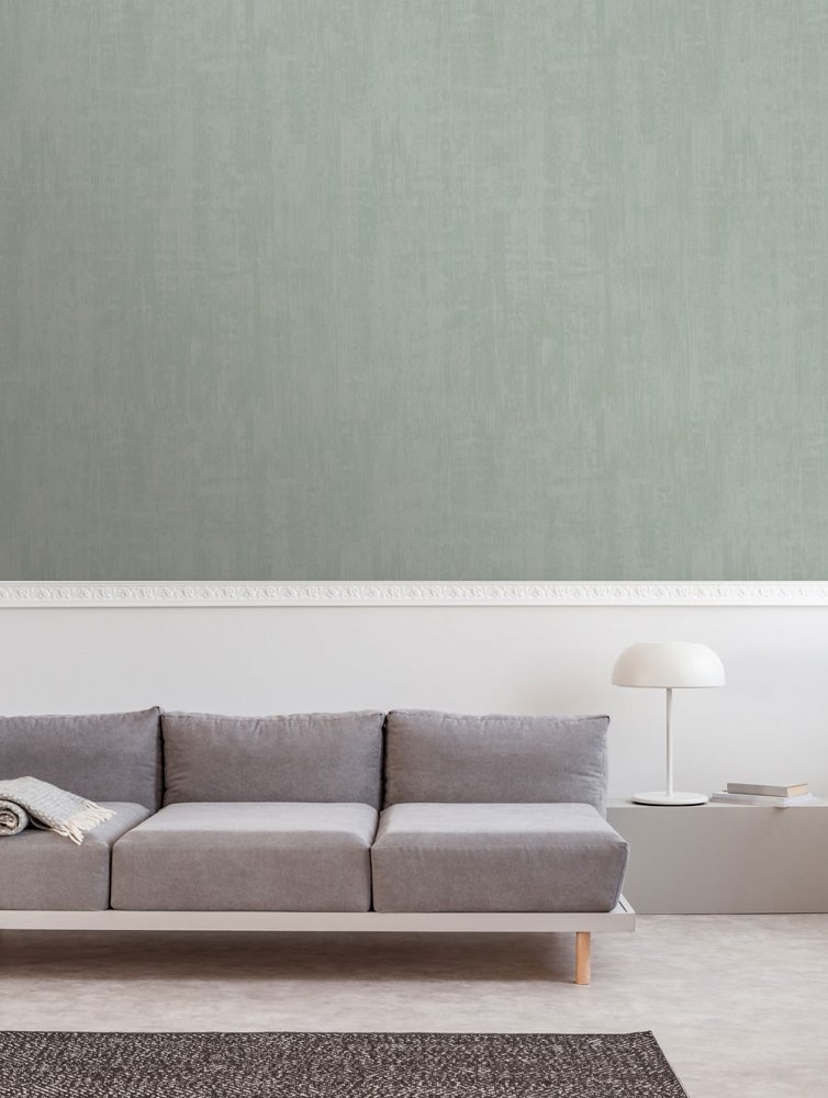 Elegantní, jemně žíhaná vliesová tapeta v odstínech bledě zelené.