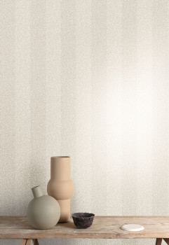 Jemně strukturovaná vliesová tapeta na zeď, imitace tvídové pruhované látky, odstíny šedé, metalické odlesky. Pruhy cca 6-7 cm Foto interiéru je pouze ilustrační - odlišné barvy.