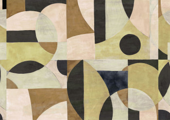 Vliesová obrazová tapeta na zeď, geometrický vzor, odstíny hnědé, šedo-béžové, růžové, zelené a černé.