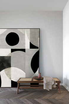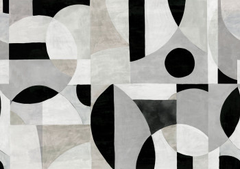 Vliesová obrazová tapeta na zeď, geometrický vzor, odstíny šedé, šedo-béžové a černé.