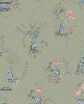 Zelená vliesová tapeta s květinami a pávy, 333142 Pip Studio 6, Eijffinger