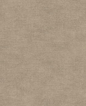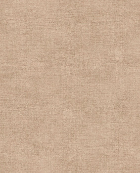 Vliesová tapeta s vinylovým povrchem, imitace hrubší tkaniny, melanž v odstínech okrové a hnědé.