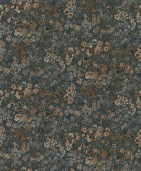 Šedo-černá vliesová tapeta s vinylovým povrchem, vzor květin, hrubší látková textura.
