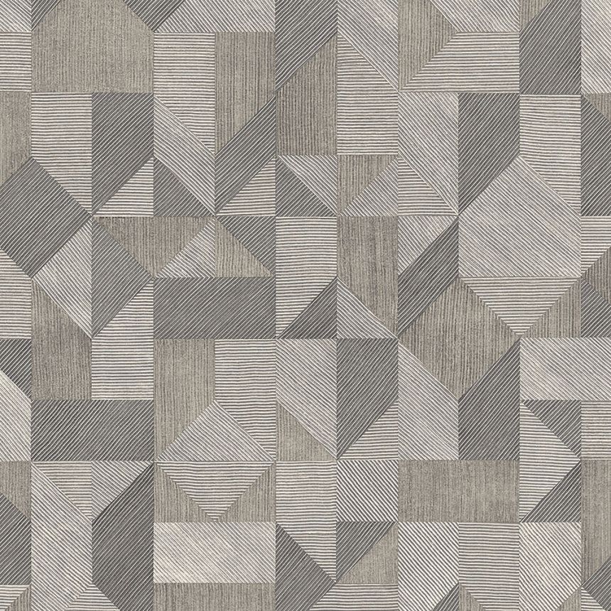 Vliesová tapeta. Vzor tvořený z čar v odstínech šedé a šedo-béžové.