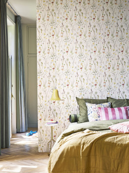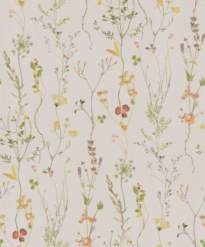 Béžová vliesová tapeta s vinylovým povrchem, vzor jemných lučních květin.