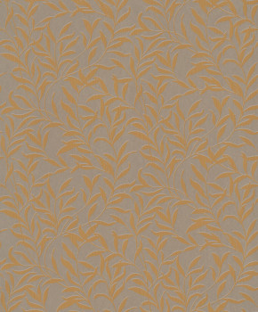 Hnědá vliesová tapeta na zeď, plastický vzor okrových vrbových větviček s listy.