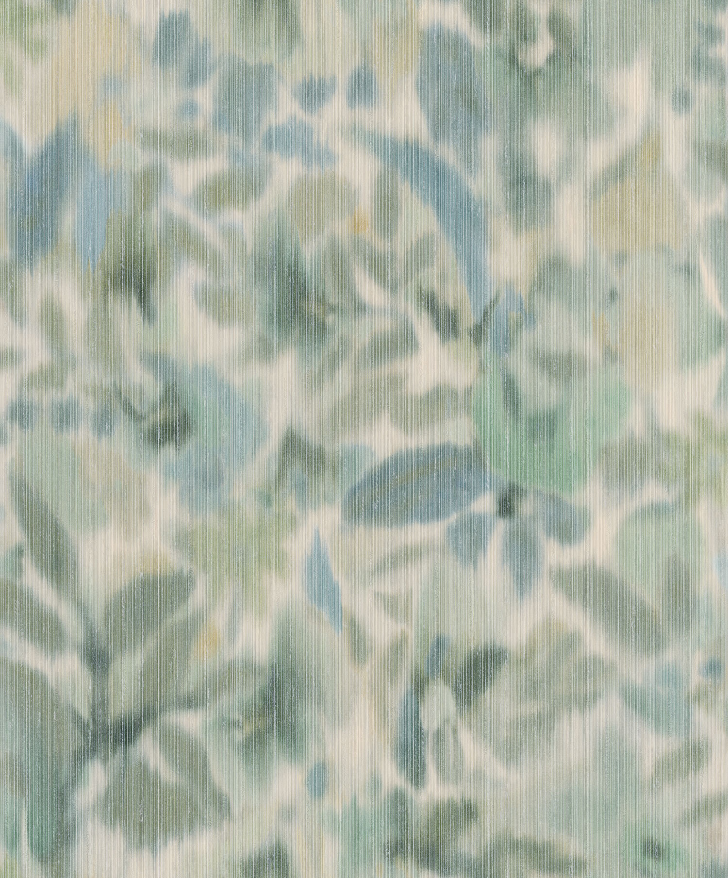 Vliesová tapeta s vinylovým povrchem a proužkovou textilní strukturou - akvarelový květinový vzor v odstínech zelené, modré a béžové.