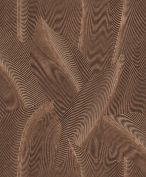 Hnědá, jemně plastická vliesová tapeta s vinylovým povrchem, efektní vzor listů.