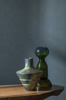 Jemně plastická petrolejově modrá vliesová tapeta na zeď, geometrický vzorek se zlatým metalickým leskem.