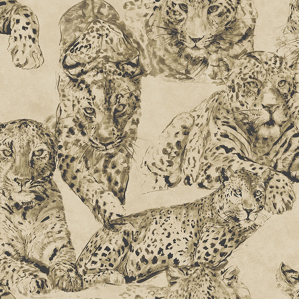 Vliesová tapeta s panterem. Podklad světlý okrovo-béžový, vzor hnědá.