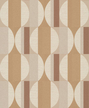 Geometrická vliesová tapeta s vinylovým povrchem - střídání jemného pololesku a matu, hladkých a strukturovaných ploch, odstíny béžové a hnědé.