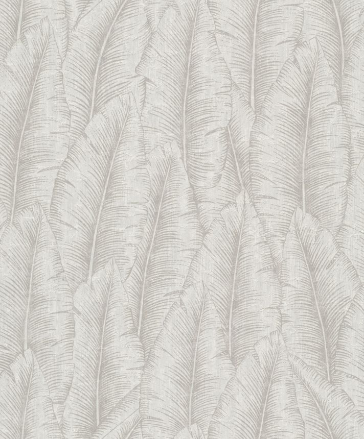 Luxusní vliesová tapeta na zeď. Motivy listů v odstínech šedé a bílé na strukturované vliesové tapetě s vinylovým povrchem.