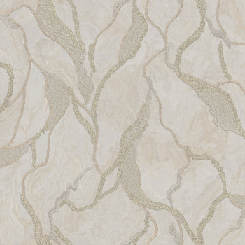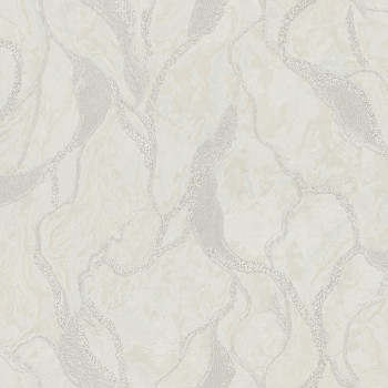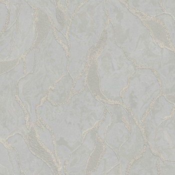 Luxusní vliesová tapeta s vinylovým povrchem - imitace zámeckého štuku, plastická textura v metalických odstínech šedo-stříbrné, místy zlaté třpytky.