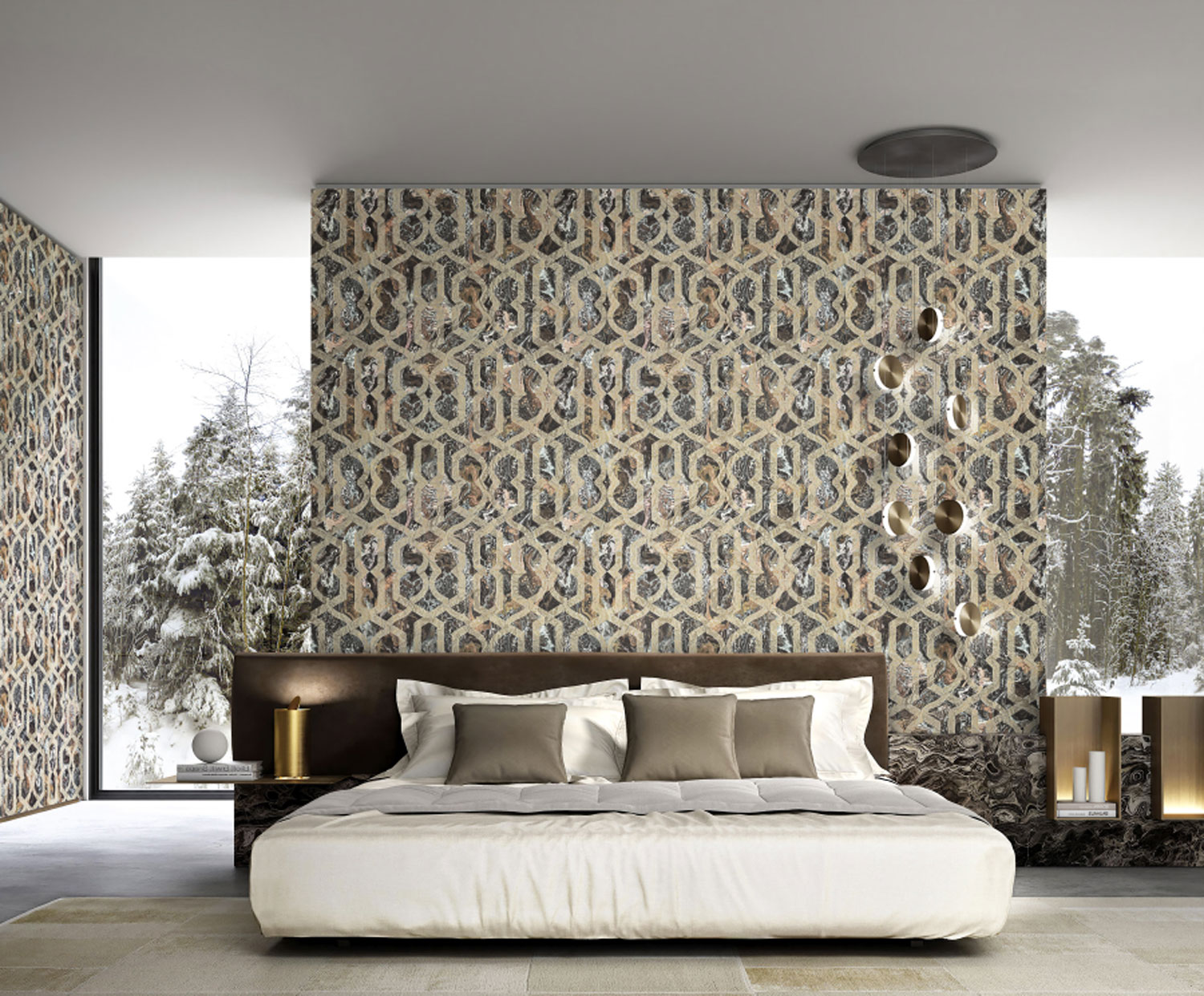 Mramory, damašky, intarzie představují italský styl; luxusní prvky jako netradiční struktury a odlesky obohatí stěny vašeho interiéru.