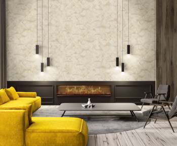 Luxusní vliesová tapeta s vinylovým povrchem - mramorovaná tapeta se čtvercovým vzorem, odstíny pololesklé krémové a zlato-béžové.