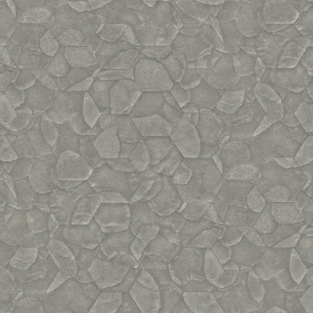 Šedo-stříbrná vliesová tapeta s vinylovým povrchem, jemná textura, netradiční vzor s hexagony.