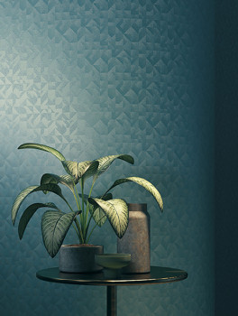 Modro-zelená vliesová tapeta s vinylovým povrchem, plastické čáry tvoří efektní geometrický vzorek.