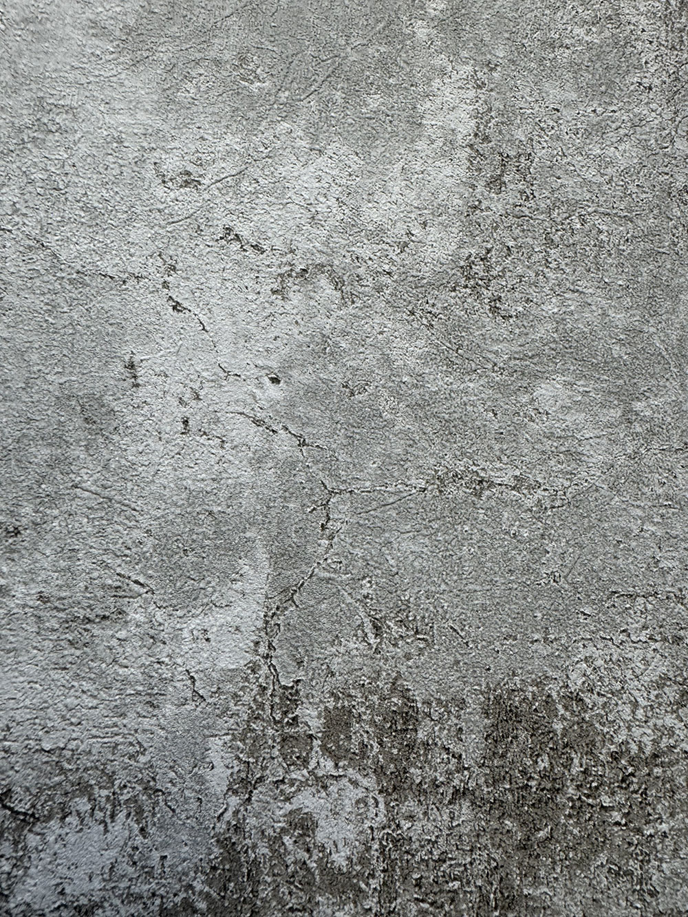 Šedá vliesová tapeta na zeď se vzhledem oprýskané betonové stěny a s jemnou krupičkovou strukturou.