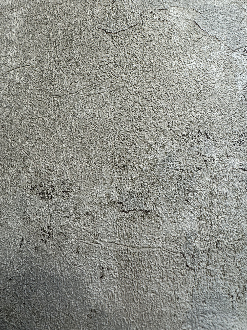 Šedo-béžová vliesová tapeta na zeď se vzhledem oprýskané betonové stěny a s jemnou krupičkovou strukturou.