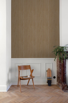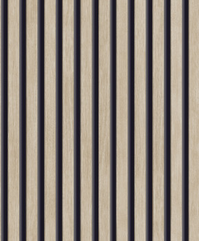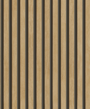 Kvalitní vliesová tapeta s vinylovým povrchem a jemným krupičkovým povrchem, která věrně imituje lamelový obklad na zeď.