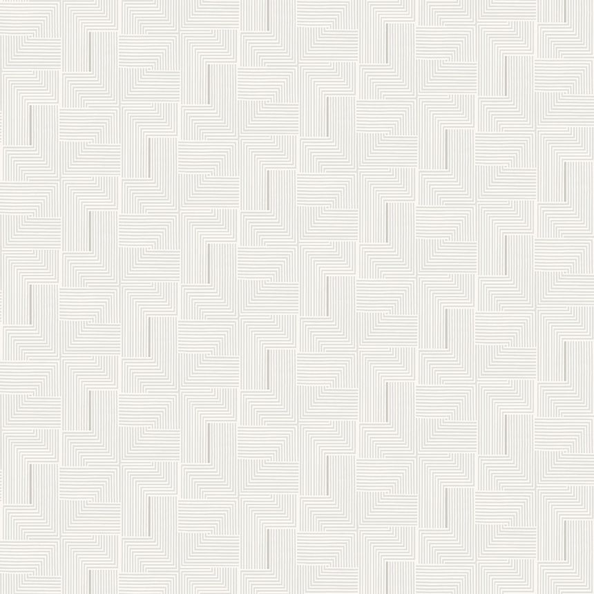 Vliesová tapeta s geometrickým vzorem.Podklad bílá, vzor šedá, stříbrné detaily.