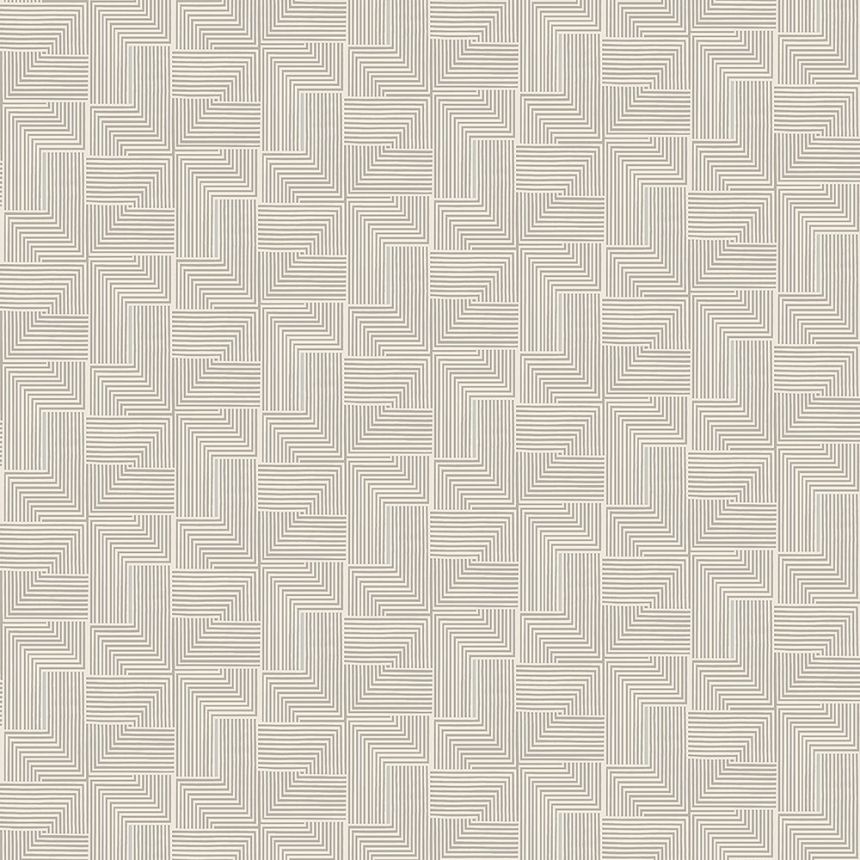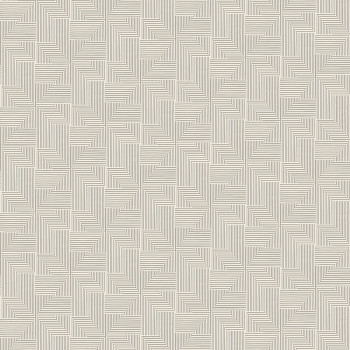 Vliesová tapeta s geometrickým vzorem.Podklad šedo-krémová, vzor šedo-béžová, metalické stříbrné detaily.
