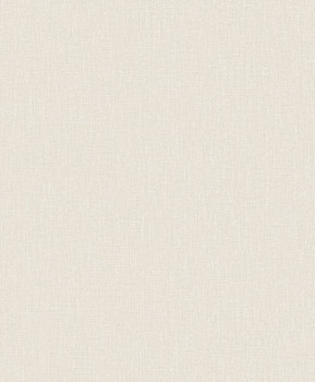 Jednobarevná, matná, krémová vliesová tapeta na zeď ve vzoru imitace látky.