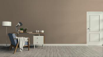 Jednobarevná, matná, hnědá vliesová tapeta na zeď ve vzoru imitace látky.