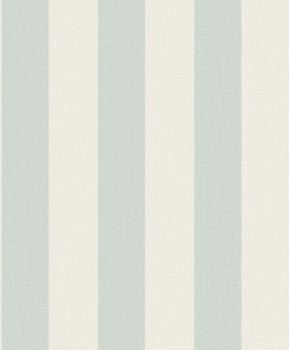 Bleděmodrá vliesová matná tapeta na zeď s béžovými pruhy, textura imitace látky.