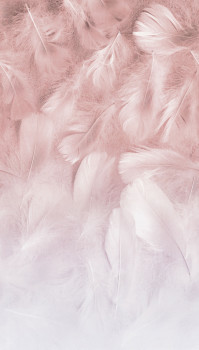 Fototapeta s jemnými peřím v odstínech růžové a bílé. Hodí se do moderních interiérů, kde je kladen důraz na jednoduchost a eleganci.