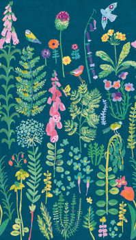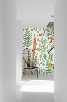Vliesová obrazová tapeta na zeď, motivy květin a kapradin.