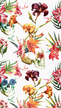 Netradiční vliesová obrazová tapeta na zeď, květiny, lebky.