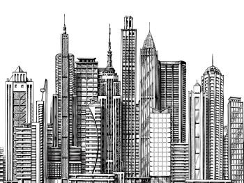 Grafická černobílá vliesová obrazová tapeta na zeď - město.