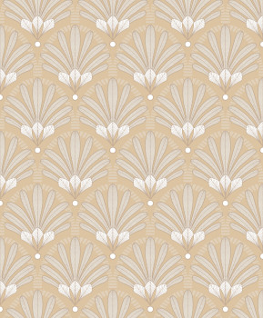 Okrová vliesová tapeta s vinylovým povrchem, krémovo-stříbrný vzor ve stylu Art Deco.