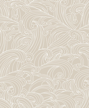 Elegantní, bílá, plastická vliesová tapeta s vinylovým povrchem, hladké lesklé obrysy vln.