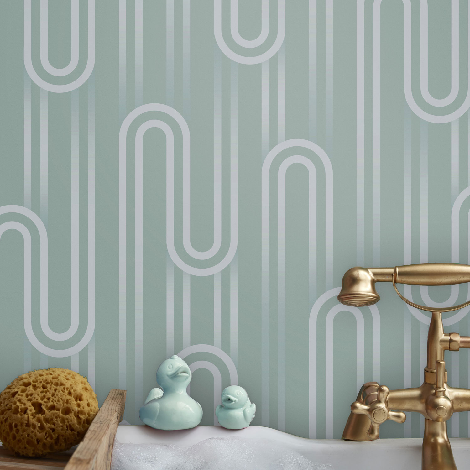 Hladká, pistáciově zelená retro geometrická vliesová tapeta na zeď, obloukový vzor.