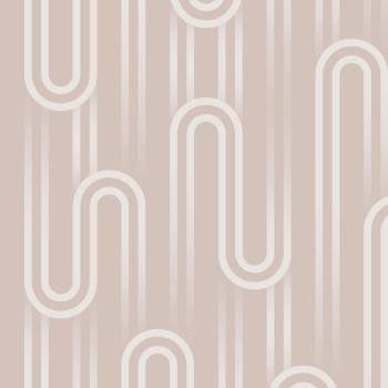 Hladká, broskvově růžová retro geometrická vliesová tapeta na zeď, obloukový vzor.
