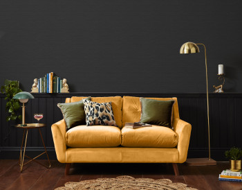 Jemně strukturovaná, černá vliesová tapeta na zeď, imitace látky.