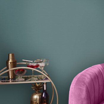 Jemně strukturovaná, tyrkysová vliesová tapeta na zeď, imitace látky.