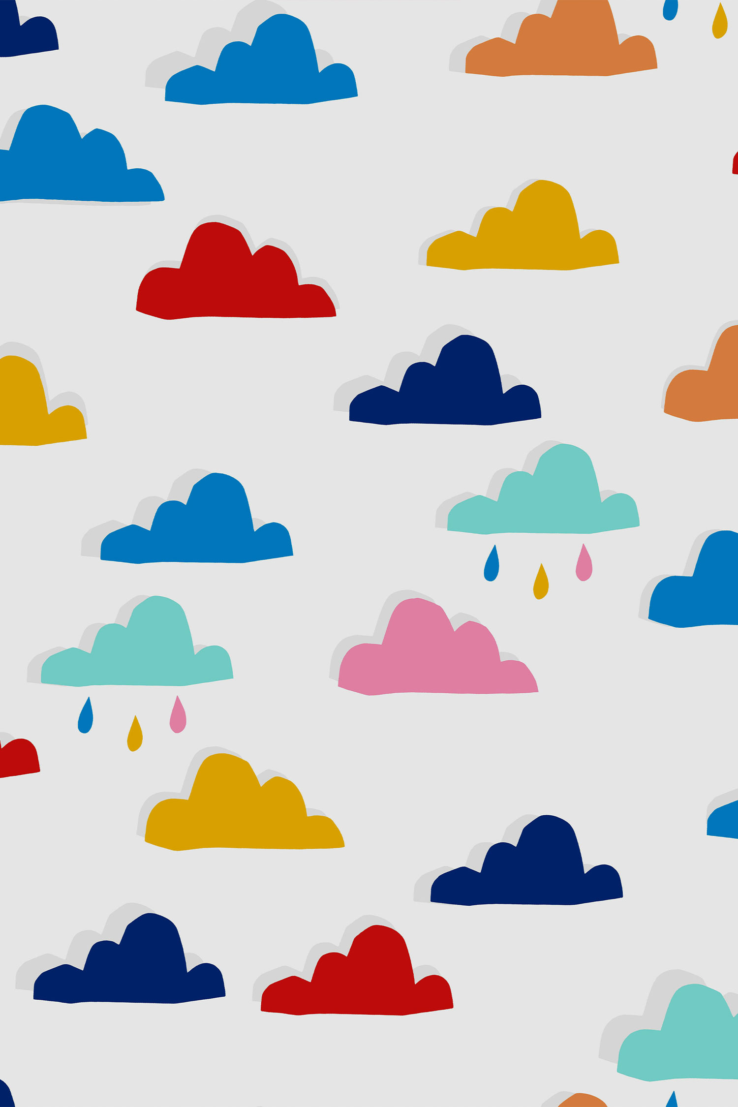 Bílá vliesová tapeta na zeď, barevné mráčky.