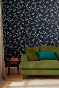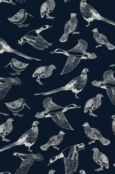 Modro-šedá vliesová tapeta na zeď, divocí ptáci.