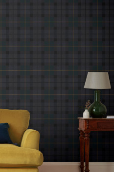 Hladká modro-zelená vliesová tapeta na zeď, imitace tartanové látky.