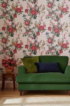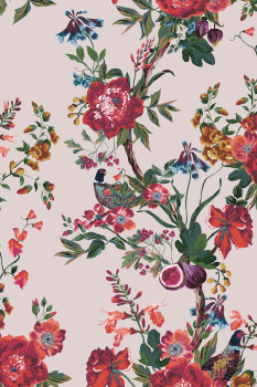 Starorůžová vliesová tapeta s květinovým vzorem Chinoiserie - podle čínských předloh.