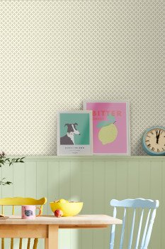 Béžová vliesová tapeta na zeď, zelený geometrický vzorek.