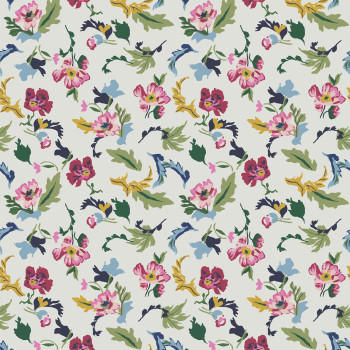 Krémová vliesová tapeta na zeď, pestrý květinový vzor.