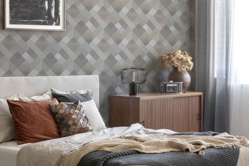 Šedo-béžová geometrická vliesová tapeta na zeď, 118708, Vavex 2025