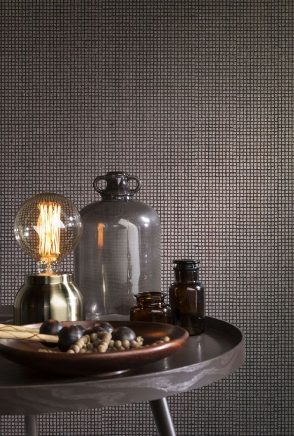 Vliesová, světle béžová tapeta. Design drobných béžových kostiček s třpytkami.