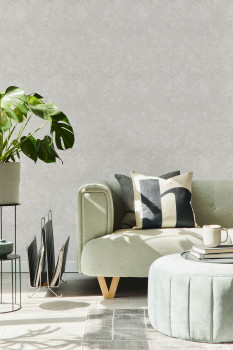 Šedá strukturovaná vliesová tapeta na zeď, imitace štukové omítky.